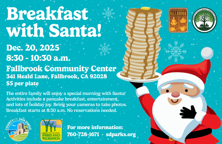The entire family will enjoy a special morning with Santa! Activities include a pancake breakfast, entertainment, and lots of holiday joy. Bring your camera to take photos. Breakfast starts at 8:30am and it is $5 per plate. No reservations needed.