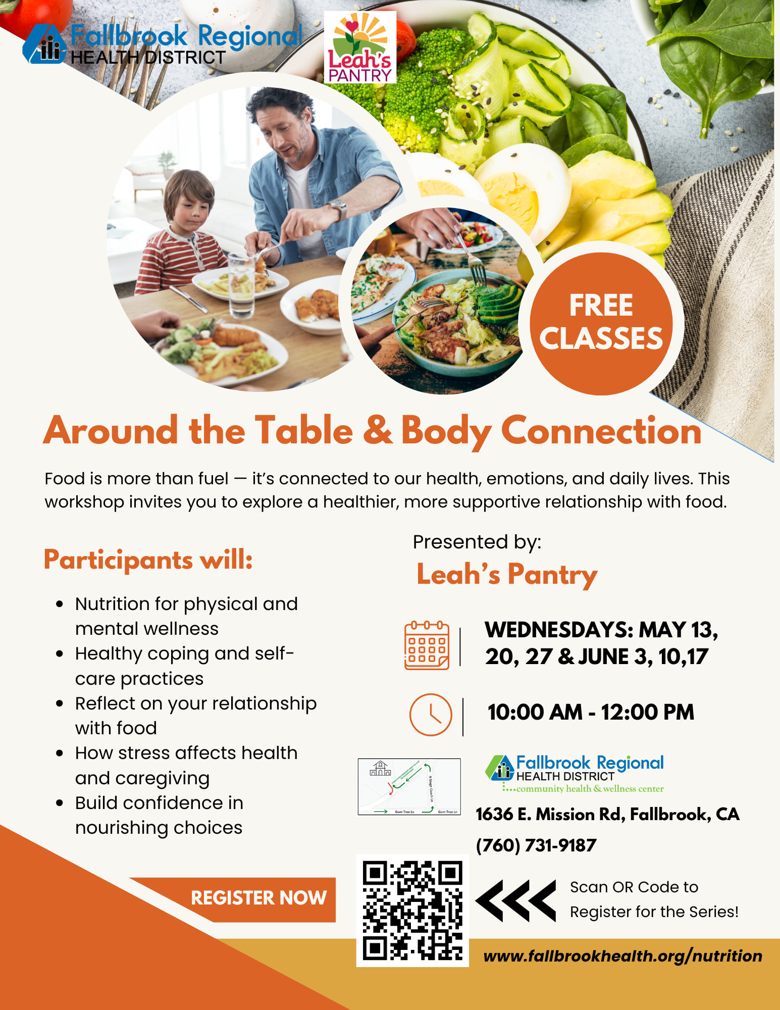 URL:https://business.fallbrookchamberofcommerce.org/communityevents/Details/free-classes-around-the-table-body-connection-presented-by-leah-s-pantry-1702354?sourceTypeId=Hub