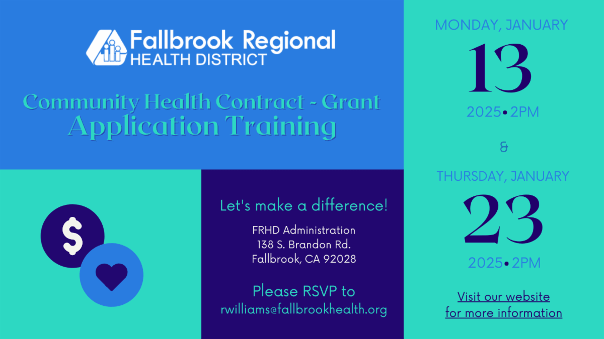 There's still time to RSVP for the Thursday, Jan 23rd date to learn more about the FRHD Community Health Contract Grant Application process, priorities and expectations. Visit the District's website for additional information.