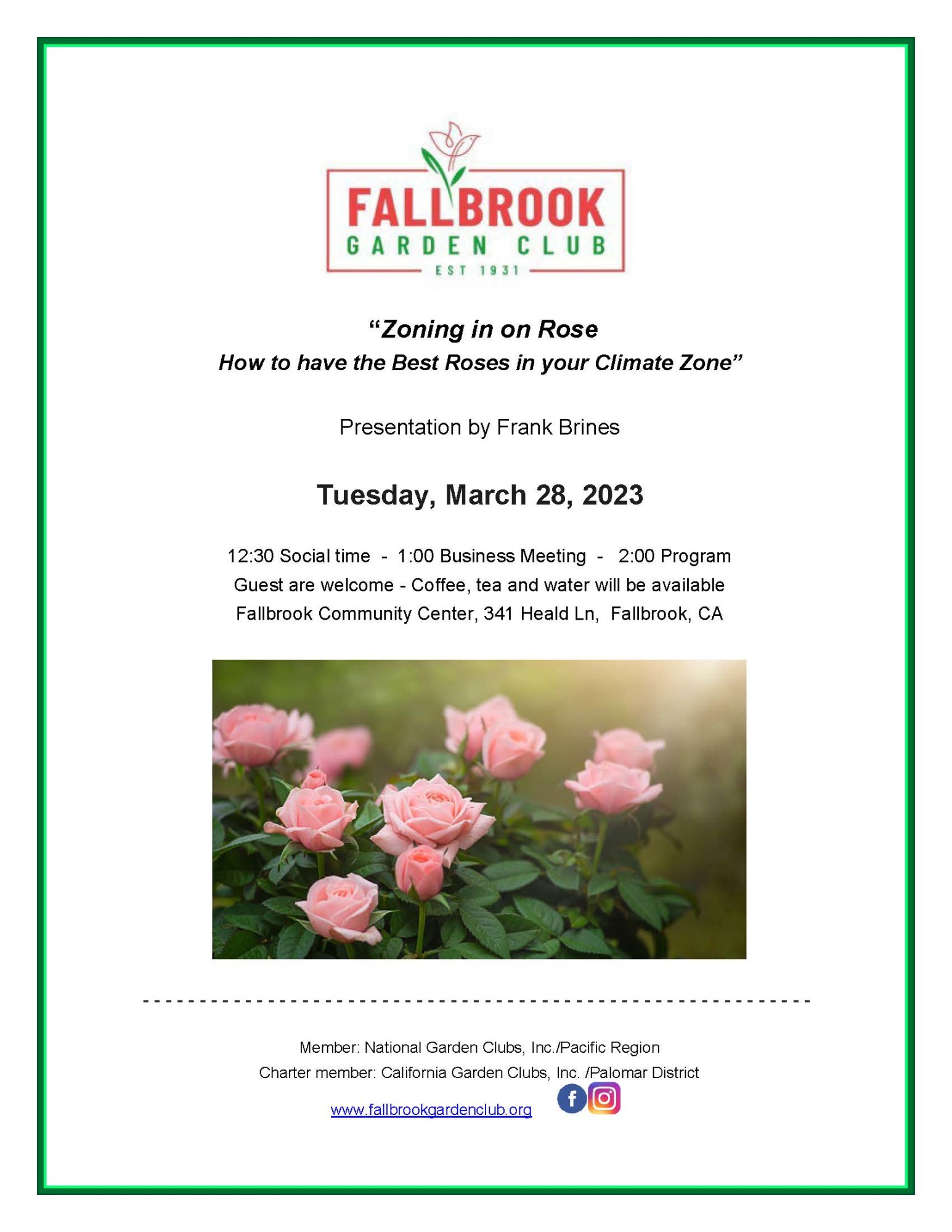 Fallbrook Garden Club "Zoning in on Rose"