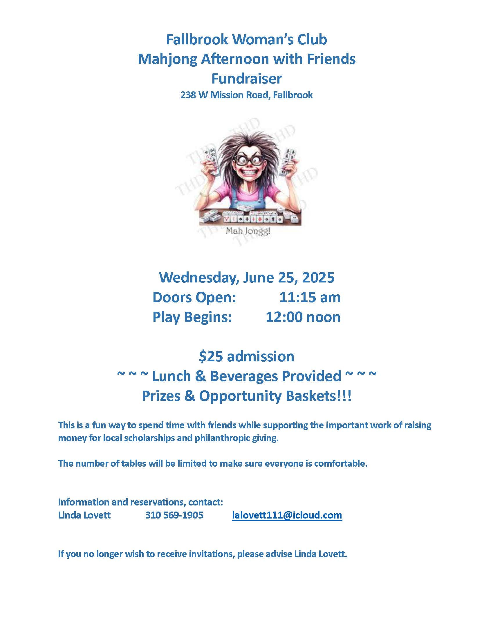 Fallbrook Woman's Club - Mahjong Afternoon with Friends Fundraiser