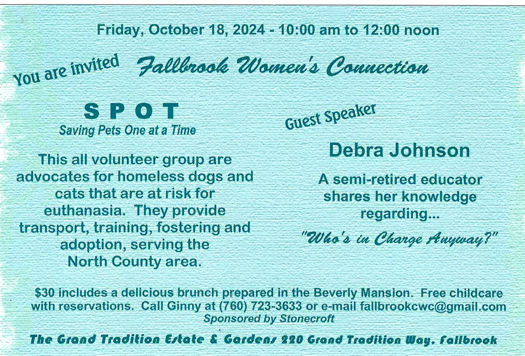 Fallbrook Women's Connection - Saving One Pet at a Time