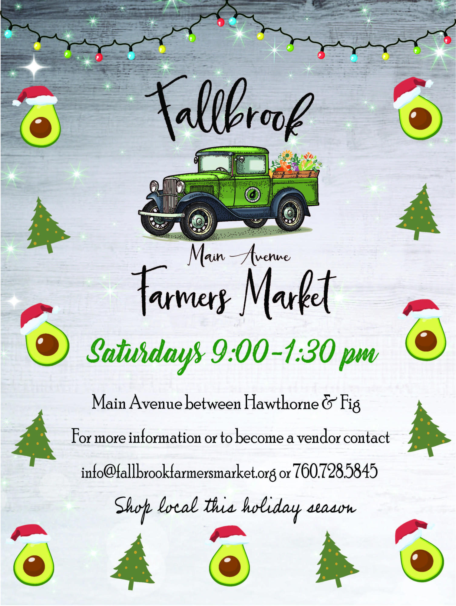 Farmer's Market on Downtown on Main Ave Back to Search Farmer's Market on Downtown on Main Ave Saturday, November 6, 2021 (9:00 AM - 1:30 PM) (PDT) Description Every Saturday from 9:00-1:30 pmWant to be a vendor? Download application below! Additional Info × Main Ave, Downtown Fallbrook Fallbroook, CA 92028 United States Saturday, November 6, 2021 (9:00 AM - 1:30 PM) (PDT) Registered Guests × Share × Print Email Add to Calendar Facebook LinkedIn X Pinterest Powered By GrowthZone