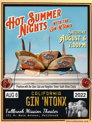 Hot Summer Nights w/ Gin N' Tonix Back to Search Hot Summer Nights w/ Gin N' Tonix Saturday, August 6, 2022 (6:00 PM - 8:00 PM) (PDT) Description Early Tickets: $15.00 At the door: $20.00. $10.00 for those 18 under can be purchased at the door w/ a paid adult. Additional Info × The Mission Theater 231 N. Main Ave. Fallbrook, CA 92088 United States Saturday, August 6, 2022 (6:00 PM - 8:00 PM) (PDT) Registered Guests × Share × Print Email Add to Calendar Facebook LinkedIn X Pinterest Powered By GrowthZone