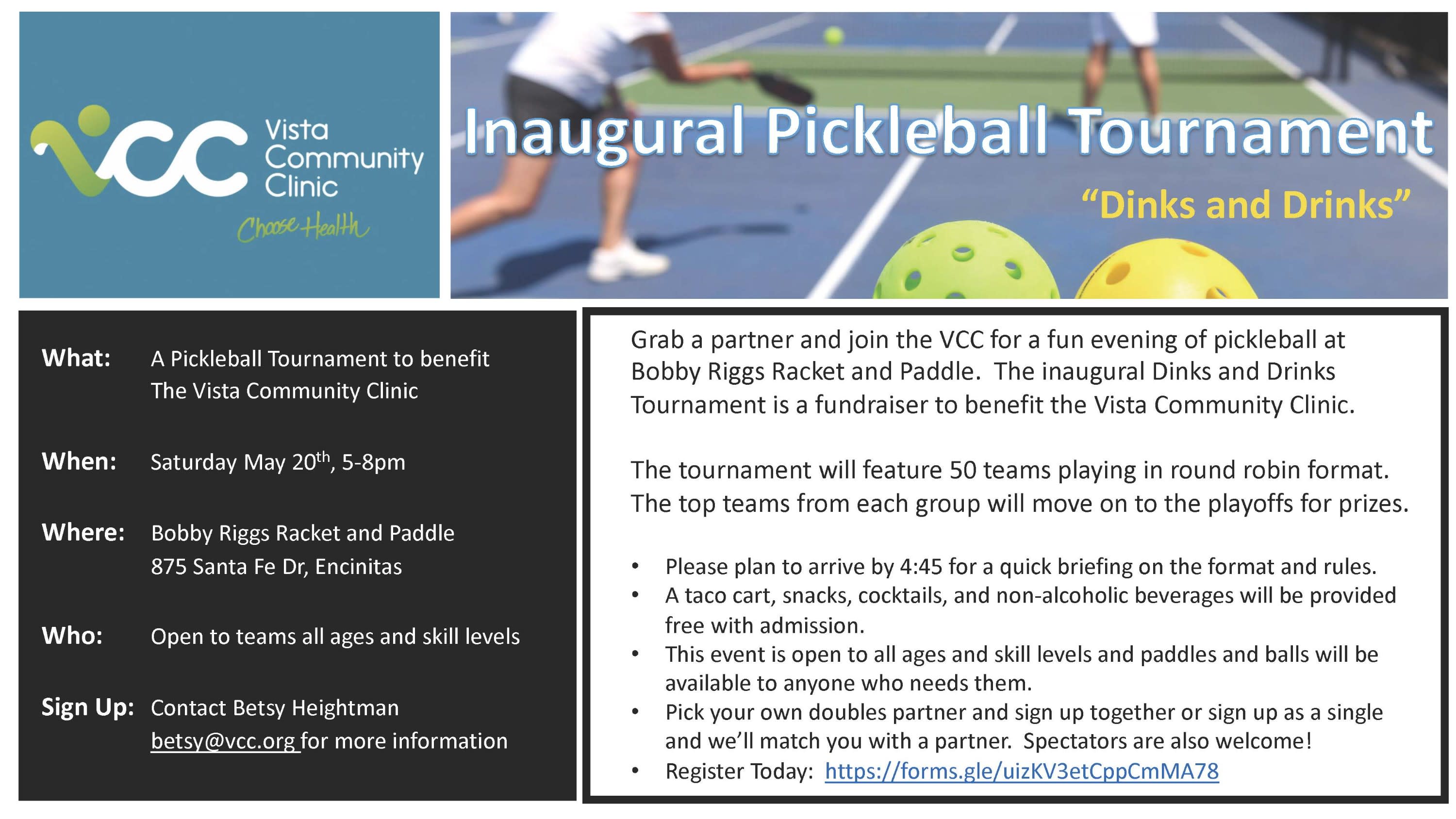 Tournament is a fundraiser to benefit the Vista Community Clinic.