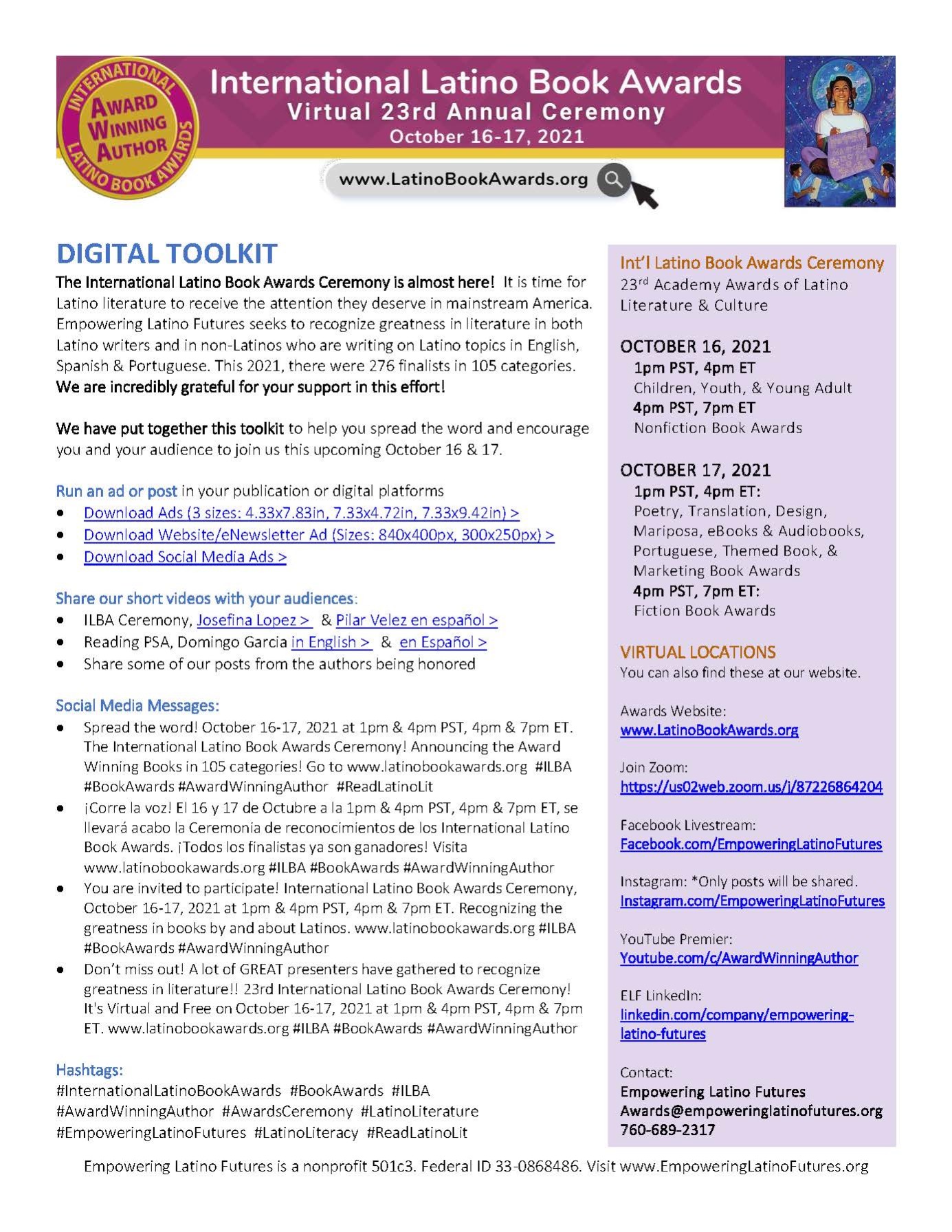 http://www.latinobookawards.org/ https://us02web.zoom.us/j/87226864204