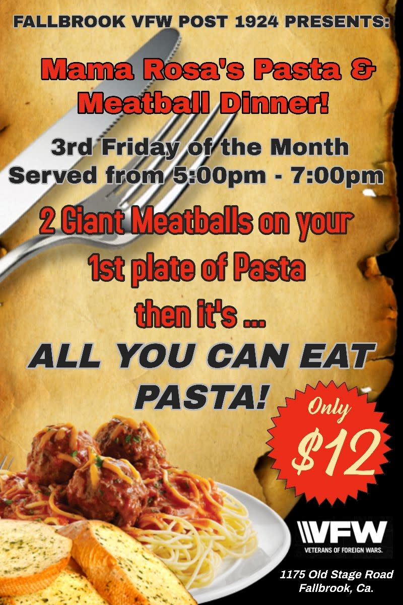 Mama Rosa's Pasta & Meatball Dinner- Public Welcome!