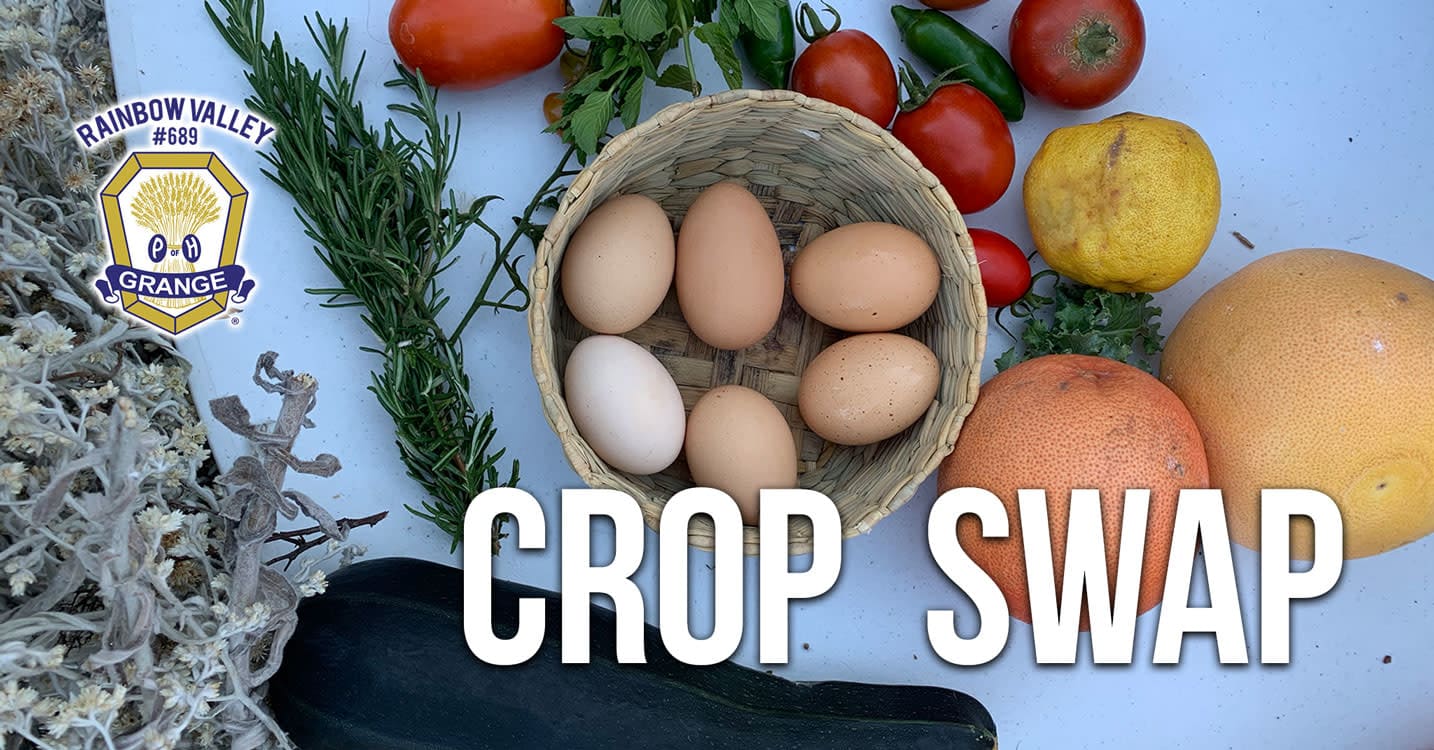 The Rainbow Valley Grange is hosting our monthly crop swap so we can trade our abundance of produce with our neighbors. All are welcome. You do not have to be a Grange member to participate.
