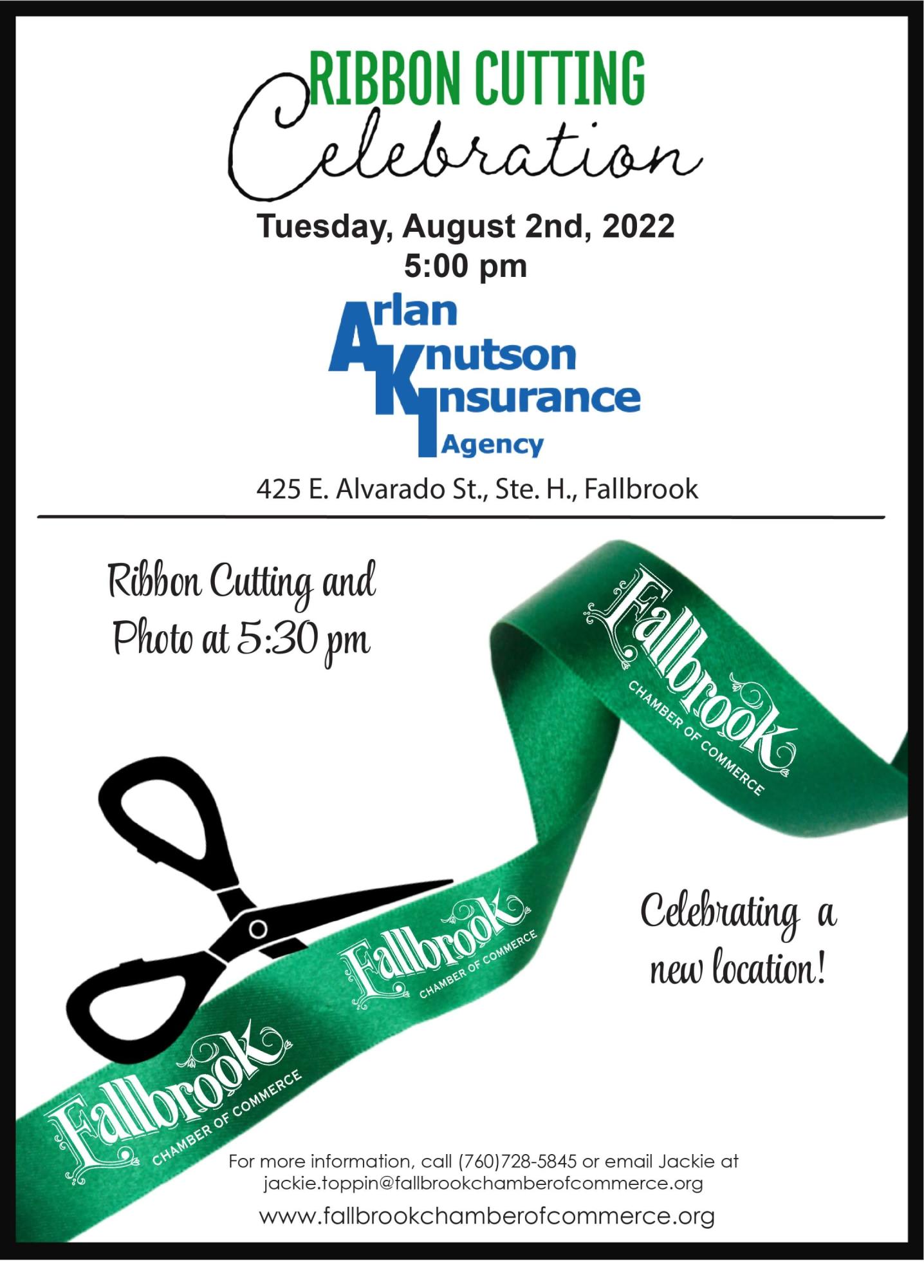 Ribbon Cutting Celebrating a New Location for Arlan Knutson Insurance