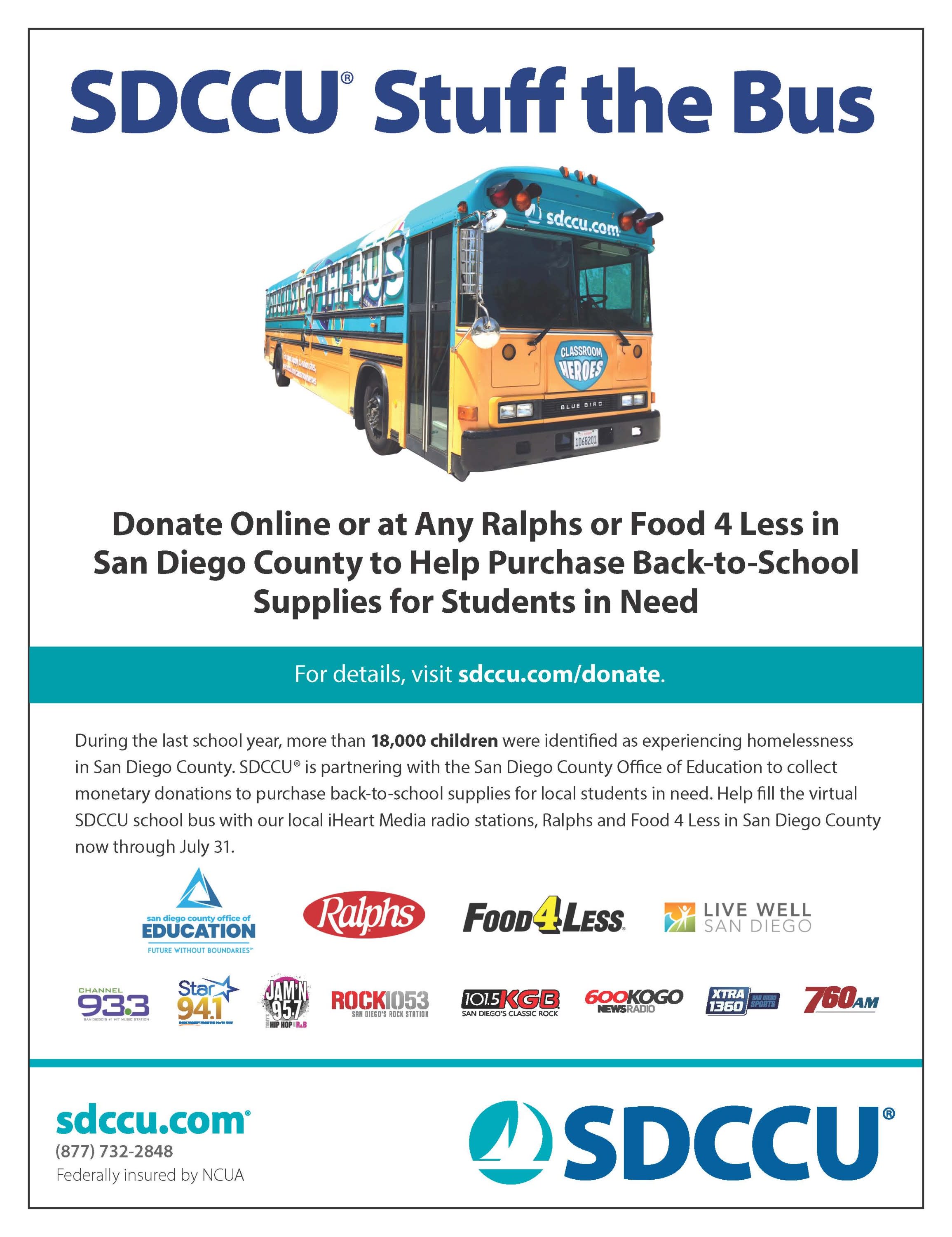 SDCCU Stuff the Bus Back to Search SDCCU Stuff the Bus Monday, July 11, 2022 8:00 AM - Wednesday, August 31, 2022 5:00 PM (PDT) Description Additional Info × sdccu.com/donate Monday, July 11, 2022 8:00 AM - Wednesday, August 31, 2022 5:00 PM (PDT) Registered Guests × Share × Print Email Add to Calendar Facebook LinkedIn X Pinterest Powered By GrowthZone