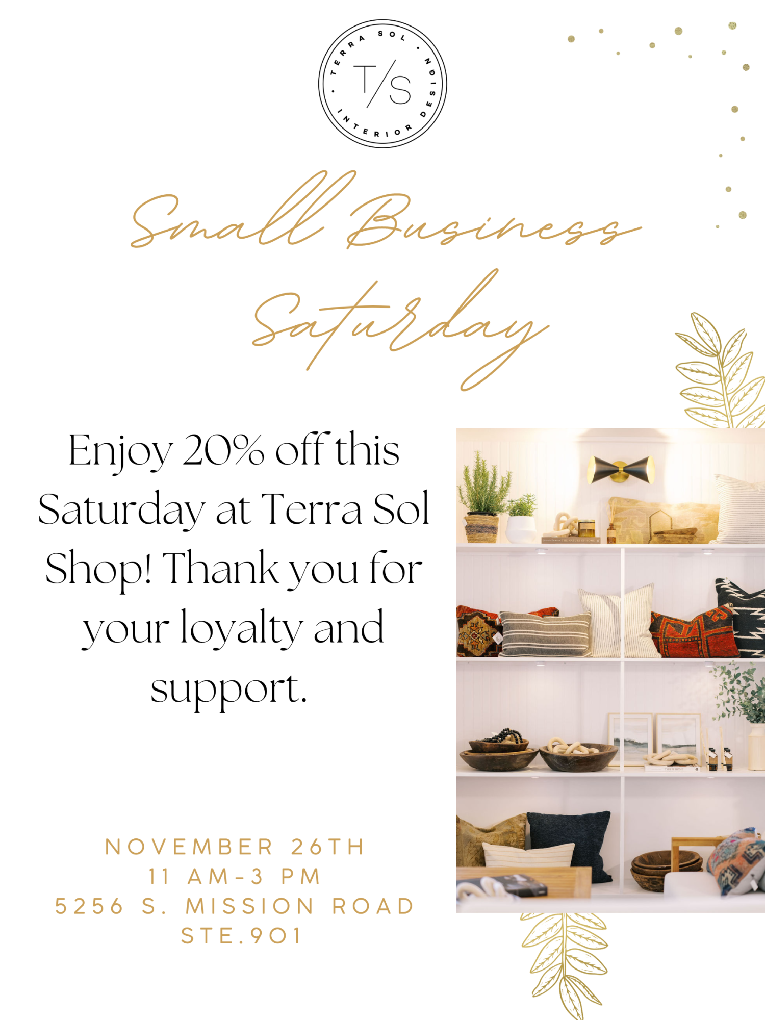 Shop at Terra Sol and get 20% off for Small Business Saturday
