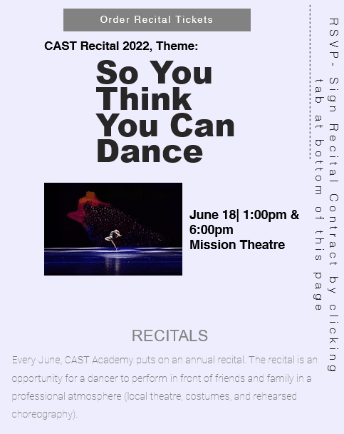 So You Think You Can Dance- Dance Recital for CAST Academy 1pm & 6pm