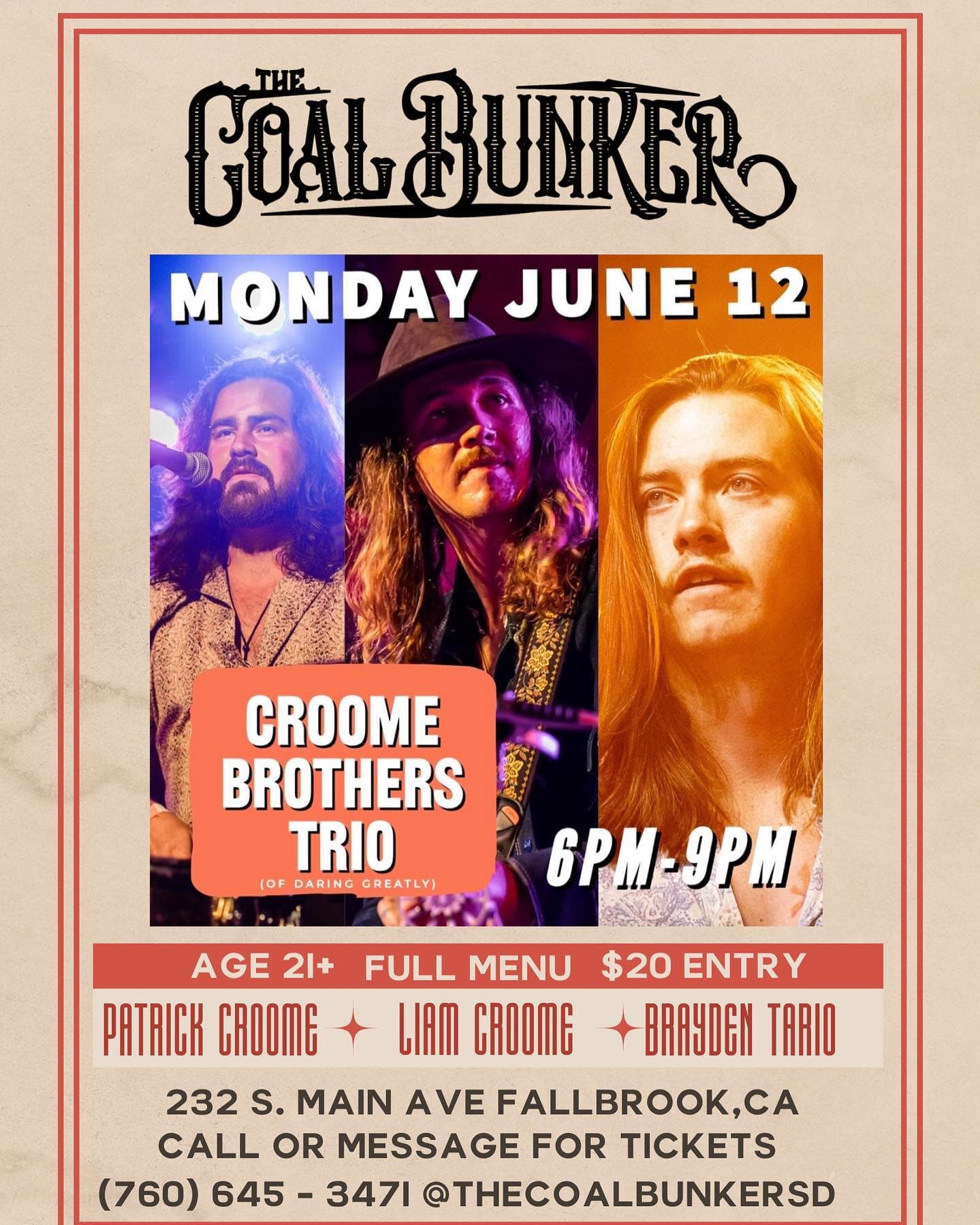 We’re bringing The Croome Brothers Trio of @daringgreatly_ to Fallbrook!