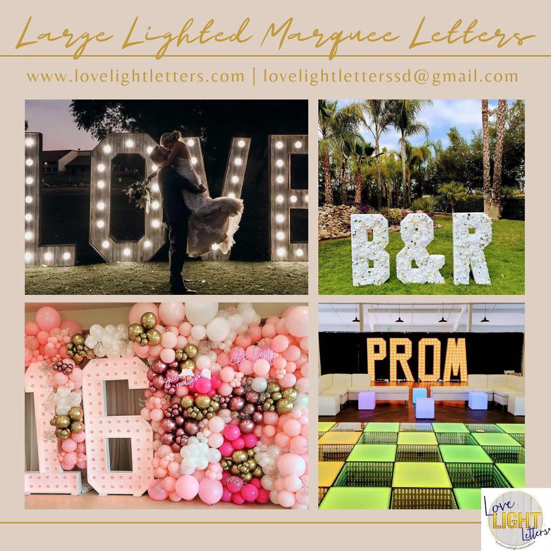 We've created Love Light Letters to help bring an added touch of sparkle and joy to all of life's momentous occasions. We're mothers, wives, and local business women. Our custom floral letters and numbers are one way we stand out amongst other marquee letter companies. We absolutely love creating something tailored to the desires of our clients! Our inventory also includes gold LOVE letters, succulent LOVE letters and lace LOVE letters. You can be sure you will find something unique in our inventory for your next big occasion. Best of all, every single one of our numbers and letters are built right here in San Diego!