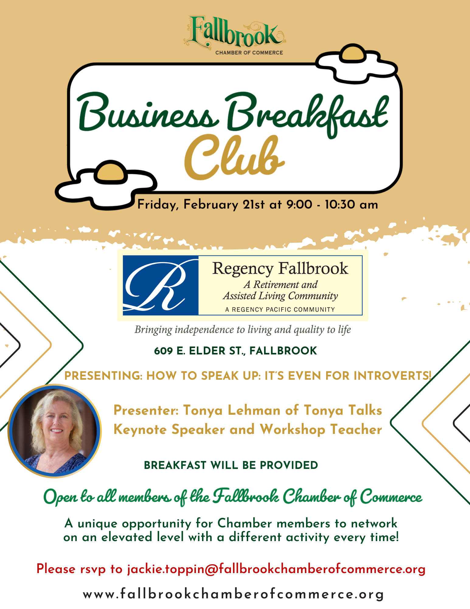 Business Breakfast Club at Regency Fallbrook with Keynote Speaker, Tonya Lehman of Tonya Talks